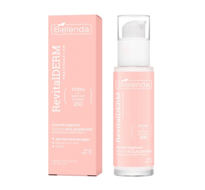 Биомикроигольная коллагеновая ночная сыворотка для стимуляции и укрепления кожи Revital Derm Prejuvenation с био-тех коллагеном, PDRN и биомикроиголками стимулирует глубокую регенерацию кожи, улучшает ее упругость и структуру, способствует уменьшению морщин. Этот усовершенствованный уходовый препарат использует технологию микроскопических игл (спикул) для интенсивной стимуляции кожи и повышения биодоступности активных ингредиентов. Формула была разработана для ночной регенерации кожи, когда ее способность к биологическому обновлению максимальна.